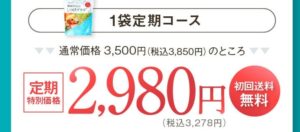 | 1袋定期コースの値段 | 初月3,278円(税込)😝 2回目から3,278円(税込) |