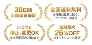 | 定期コースの配送一時停止、 解約はお電話をお願い致します。 TEL:050-5433-6621 (土日祝を除く10:00から18:00)。 | |