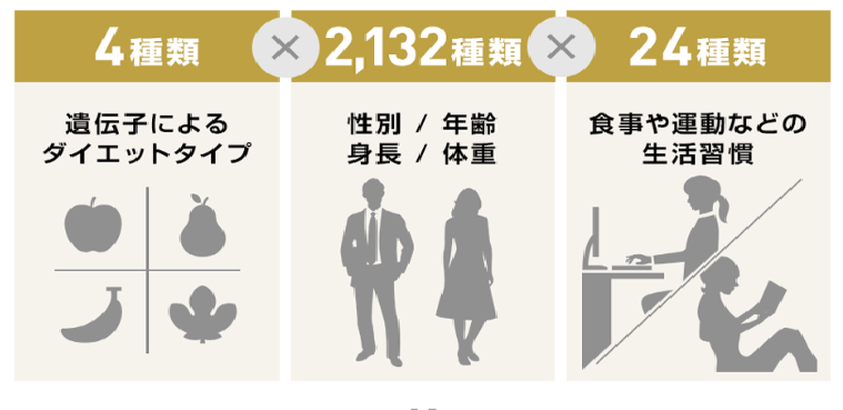 - 遺伝子検査を活用した個別プラン作成で、理想の体質に合わせた食事・運動メニューを提案