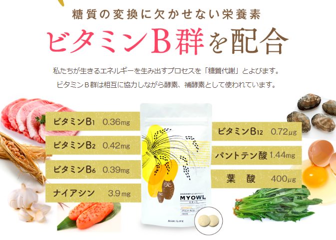 糖質の変換に欠かせない栄養素ビタミンB群を配合