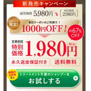 | 定期初回割引価格 | 2,980円(税込) 本日クーポン利用で1,000円OFFの1,980円(税込) |
