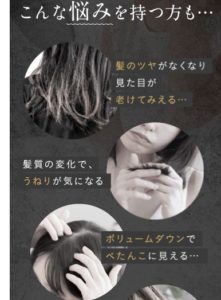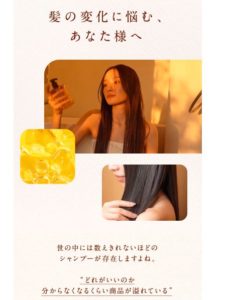 まるでトニックシャンプーを使った後みたいパサツキが合った髪が潤って髪にツヤ感が….