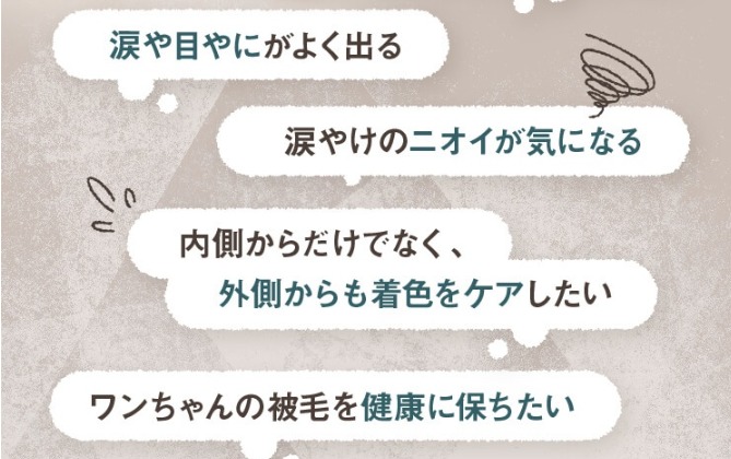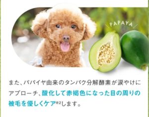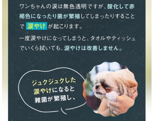徐々に着色汚れが落ちて被毛を保護して新しく涙やけを作らない様に導いてくれます