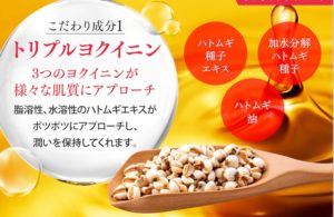 | 注目の成分 | トリプルヨクイニン(ハトムギ油・ハトムギ種子エキス |
