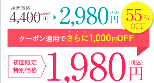| 公式販売店の値段 | 55%OFFの1,980円(税込) |