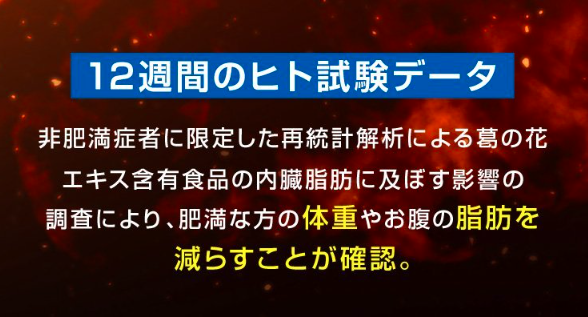 | 葛の花由来イソフラボン | 機能性関与成分 葛の花由来イソフラボンは葛の花部から独自の製法により抽出して得られた素材 運動や食生活の改善に合わせて摂ることで、お腹の脂肪が提言することが報告されてます。 体内の脂肪を増やさない、分解する、消費するの3つのメカニズムにより、お腹の脂肪低減をサポートします |