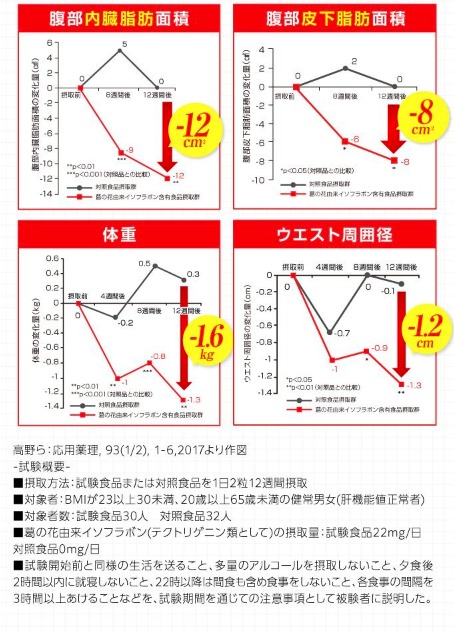 継続して使用することで、体重、お腹の脂肪、ウエスト周囲軽が減ることに