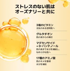 オーズナリーホワイトガンセラムは3種のビタミンとグルタチオン、ナイアシンアミド配合