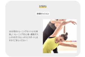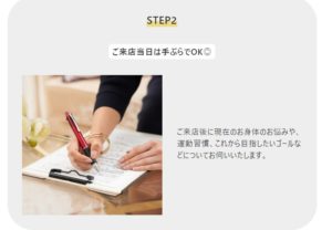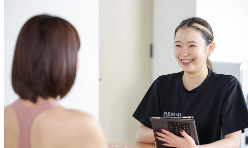 ELEMENTでは、身体のお悩み・今後の目標・日々の食事・通いやすいスケジュールなどをしっかりと把握できるように、初めに1名1名のパーソナルカウンセリングをさせていただきます。