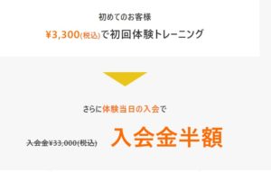 | 体験当日入会で入会金がなんと | 33,000円(税込)が半額になります ↓↓ 16,500円(税込) |