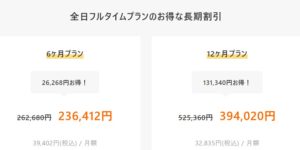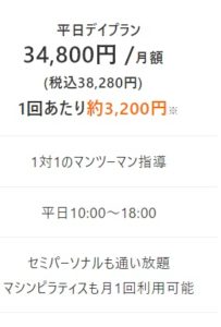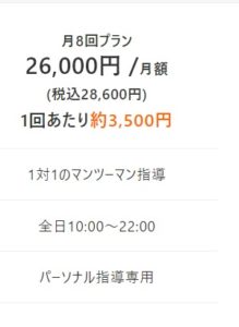 | 3つのプラン | 月8回プラン 月額28,600円(税込) 1回あたり 約3,500円平日デイプラン 月額38,280円(税込)前日フルタイムプラン 月額43,780円(税込) 1回あたり約3,650円 |