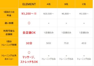 - 7 パーソナルジム ELEMENT(エレメント)と他のジムを比較