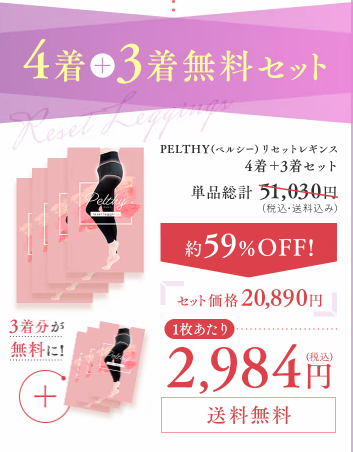 ペルシーリセットレギンスの公式販売店の4枚セットの値段
