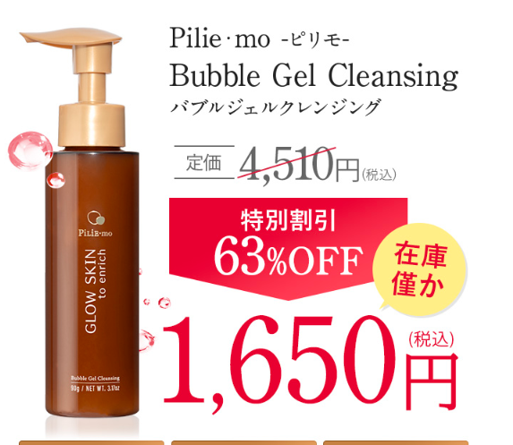 ピリモバブルジェルクレンジングが初回63%OFF限定1,650円(税込)でお試しできるチャンス😀