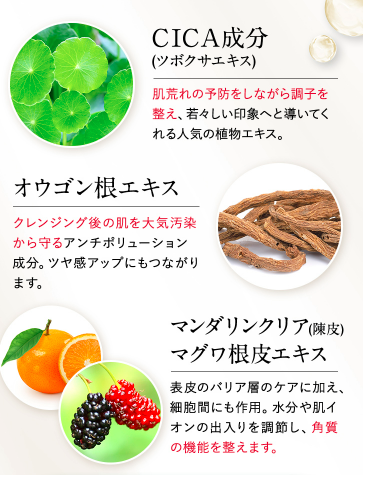 ピリモバブルジェルクレンジングはCICAやオウゴン根エキスなどの美肌生薬を採用