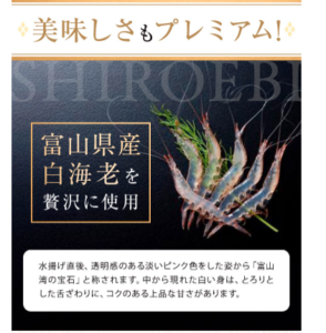 プレミアム酵素茶漬けは富山県産の白海老を贅沢に使用