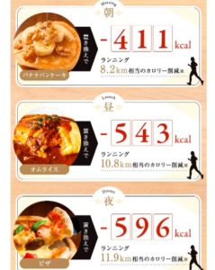 | 昼 | オムライスと置き換えで ランニング10.8km相当のカロリー削減※ |