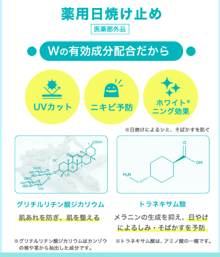 ニキビや肌あれを予防しながら、メラニンの生成を抑えシミ・