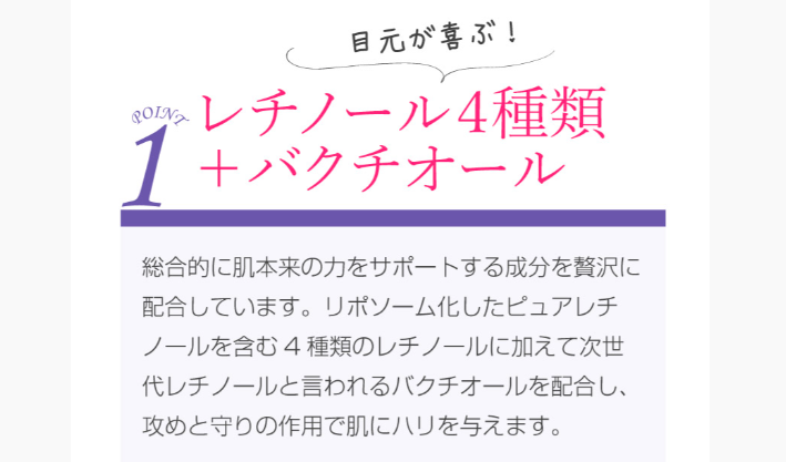 目元の年齢サイン*ニアプローチし、レチノールと併用することでワンランク上のハリ・ツヤ肌へと導きます