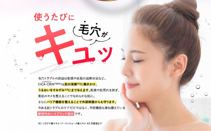肌には本来、ターンオーバーという肌を生まれ変わらせる力を持っています。しかし、乾燥などのダメージによって乱れてしまい、結果として皮脂の過剰分泌や角栓を発生させてしまいます。それが毛穴トラブルの原因となるのです。 シカクリンは今、話題の成分であるCICAにプラスして、アーチチョーク葉エキスを独自配合した成分です。 高い保湿効果があり、乾燥が気になる肌を艶やかに整えます。さらに肌荒れや毛穴引き締めに効果が期待できるので、スキンケアには貴重な成分とも言えるでしょう。 |