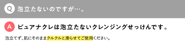 | ピュアナクレに即効性を求めている | ピュアナクレは高品質のスキンケアですが、即効性はありません ピュアナクレは毎日使い続けることが大事です |
