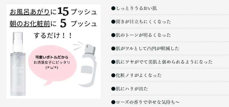 ラピシアローズで顔とバストが艶肌に!毎日シュッと吹きかけるだけ
