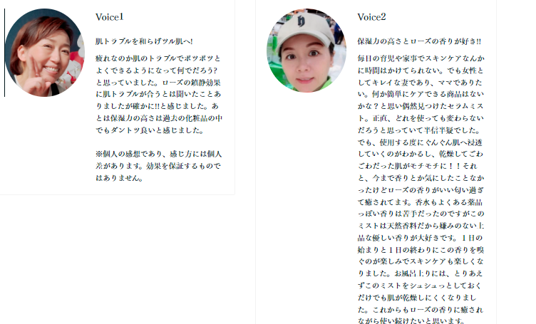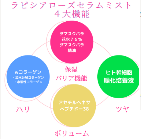 | 有効成分 | ダマスクローズ花水76%配合 |