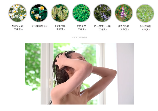 | 7種類のハーブ由来成分で頭皮をスッキリ | カミツレ花エキス チャ葉エキス イタドリ根エキス つぼくさえきす ローズマリー葉エキス おうごん根エキス カンゾウ根エキス |