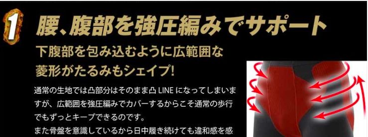 下腹部を包み込むように広範囲な菱形がたるみもシェイプ