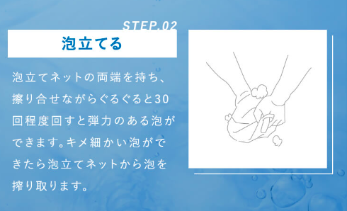 なめらかな肌あたりで、肌をやさしく洗い上げる