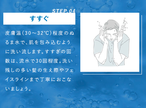 落としすぎず、潤いを守る処方で油分と水分のバランスを調整。テカリ・ベタつきにアプローチします。