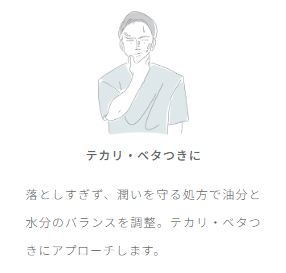 | メリット | 刺激を受けやすい肌でも優しく使える 肌のテカテカを洗浄し、過剰な皮脂をスッキリ 清潔感のある肌を目指せる |