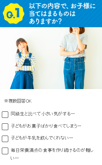 | おすすめの人 | 💁♀️子供の身長が伸びるか心配な人 💁♀️子どもの栄養不足が心配な人 💁♀️カルシウムを含む食品を あまり食べてくれないから心配な人 💁♀️子どもが運動でけがをしないか心配な人におすすめ |