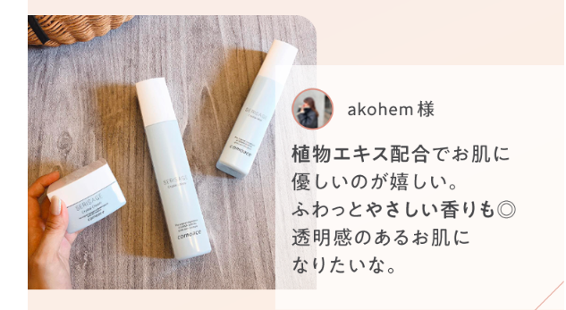 スキンケアを探していたところ、この商品に出会いました😊香りが強すぎず、ふわっとやさしい香りも気に入って