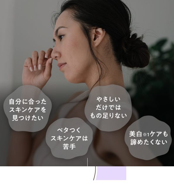 | おすすめの人 | 💁♀️自分に合ったスキンケアを見つけたい 💁♀️べたつくスキンケアは苦手 💁♀️優しいだけでは物足りない 💁♀️美白*1ケアも諦めたくない |
