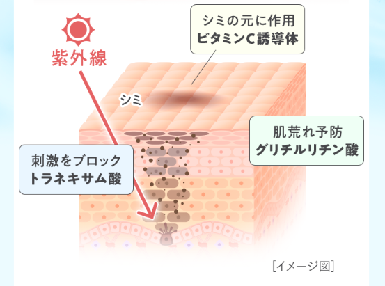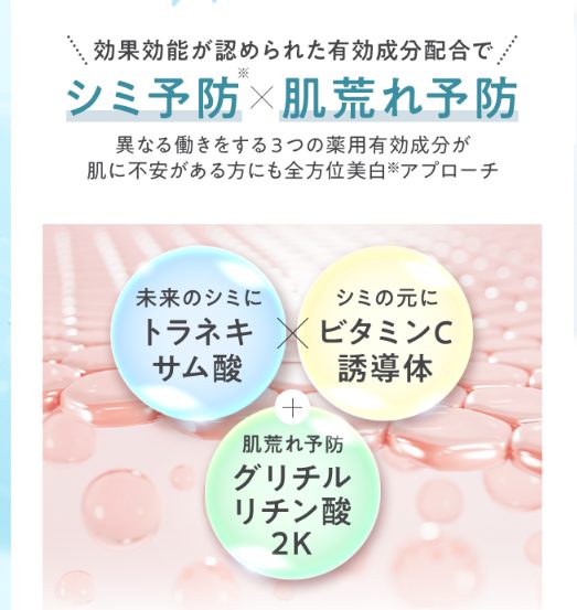 効果効能が認められた有効成分配合でシミ予防*1 x 肌荒れ予防
