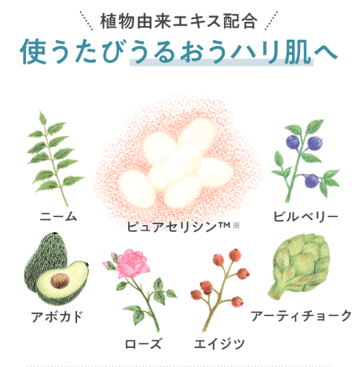 - 10 植物エキス配合、使うたびうるおうハリ肌へ