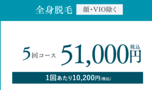 | 全身+VIO脱毛5回の値段 | 53,800円(税込) |