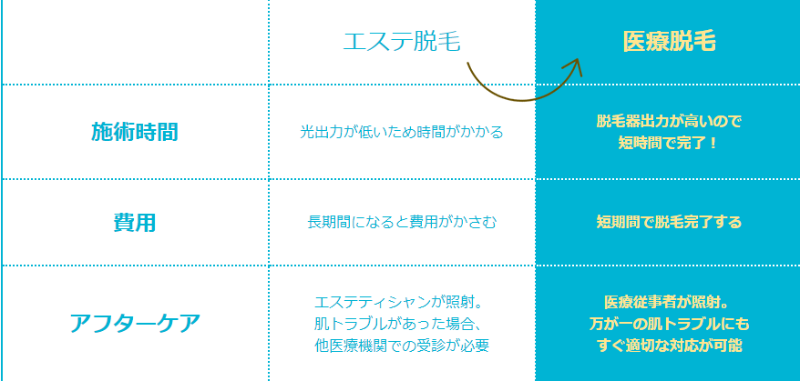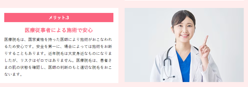 脱毛器の出力が高く、また医療従事者が施術を担当