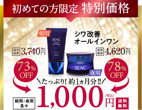 SEAC(シーク)シワ改善オールインワンの公式通販では、76%OFF初めての方お一人様 1 回限り