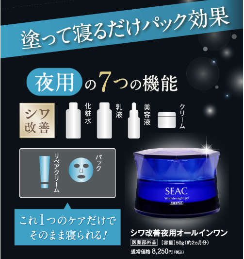 SEAC(シーク)シワ改善夜用オールインワンはこれ1つで7つの役割