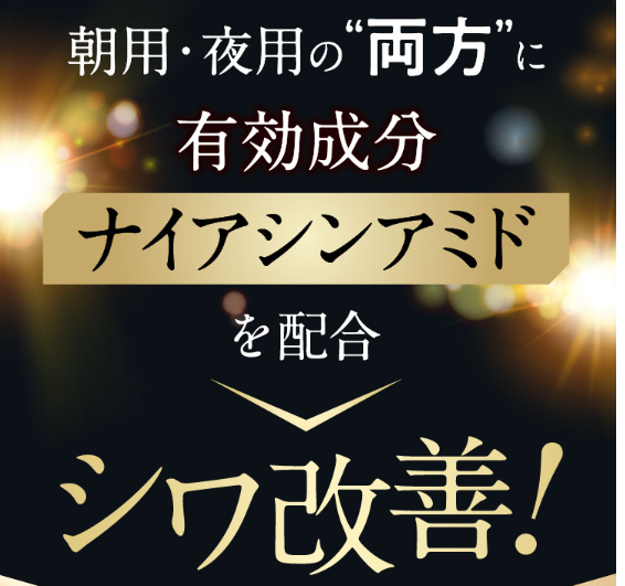 | 今あるシワにも効果があるの? | 医薬部外品としてシワを改善する効果が認められている有効成分「ナイアシンアミド」が配合されています。これが真皮にまで届いて、肌本来のコラーゲン産生を促進し、今あるシワを改善します。 |