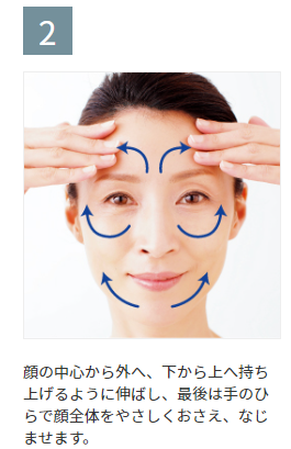 最後は掌で顔全体を優しく抑えて馴染ませます