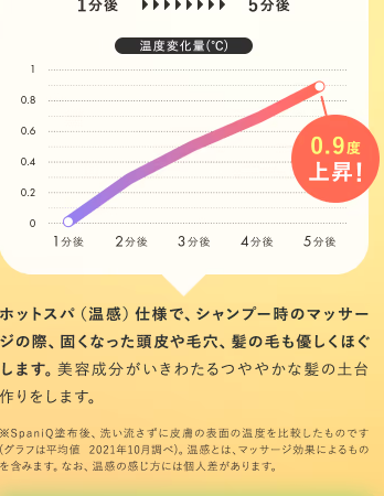 シャンプーをするとじんわり温かくなるので気持ちよく使えます