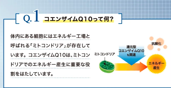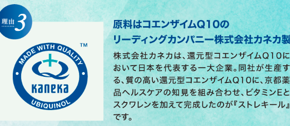 原料はコエンザイムのQ10のリーディングカンパニーが調達
