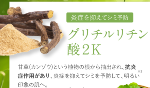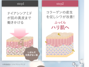 ナイアシンアミドやグリチルリチン酸2Kといった有効成分が配合されており、シワ改善と肌荒れ予防の両面からしっかりアプローチしてくれます。