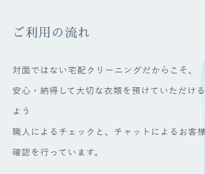 | おすすめの人 | 毎日の洗濯が面倒だと感じる人 洋服を自宅で洗濯したら傷んでしまった人 大事な洋服を綺麗に洗濯したい人 お手頃価格のクリーニング業者を探している人におすすめ |