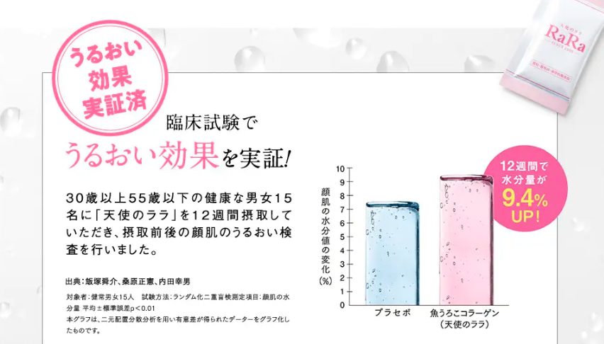 高純度液体フィッシュコラーゲン 天使のララを12週間摂取していただき、摂取前後の