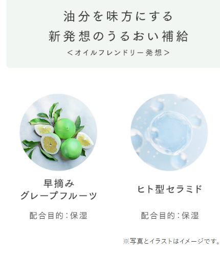 - ヒト型セラミド・グレープフルーツ/白ぶどう発酵・緑茶エキスなど整肌保湿成分も配合