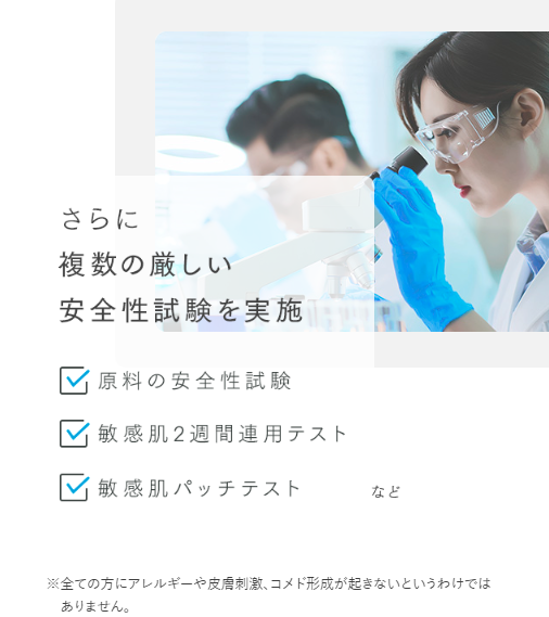 ※全ての方にアレルギーや皮膚刺激、コメド形成が起きないというわけではありません。